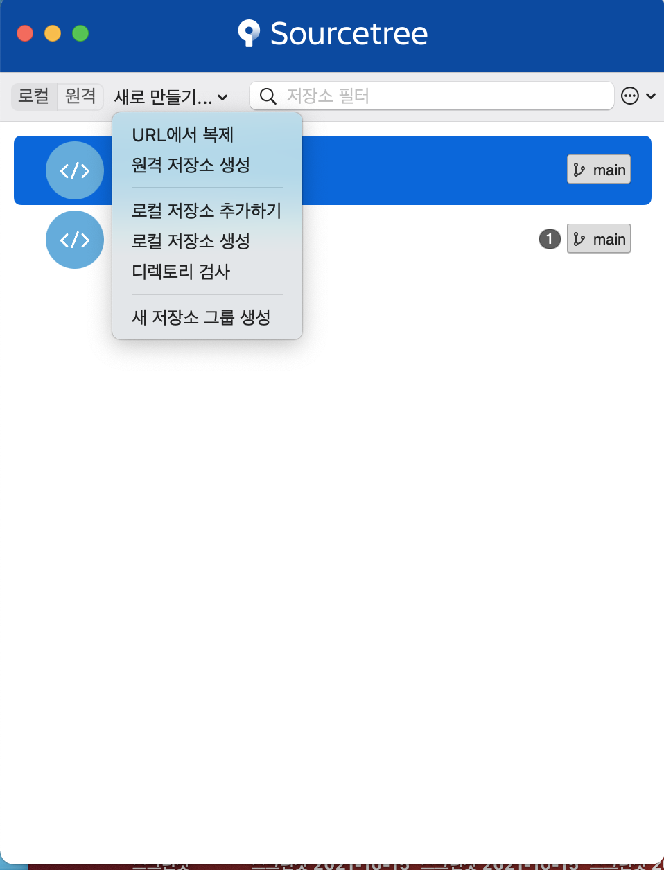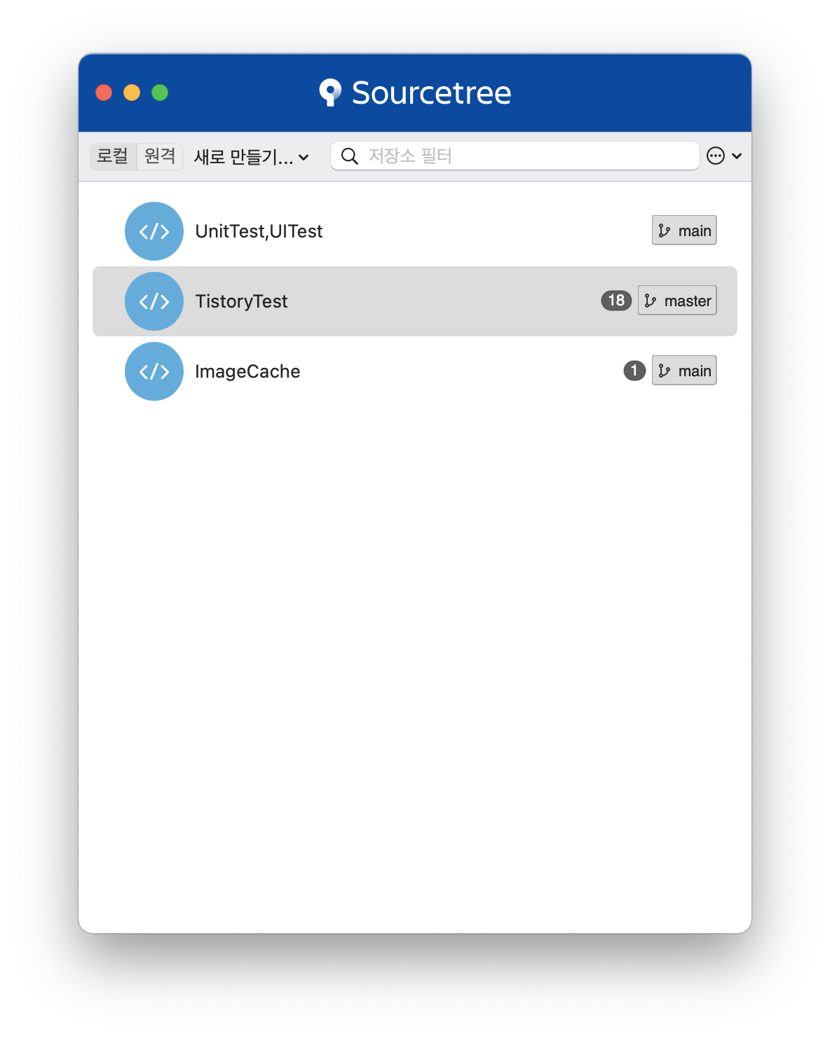 새로 생긴 저장소는 리스에 보여지게 된다.