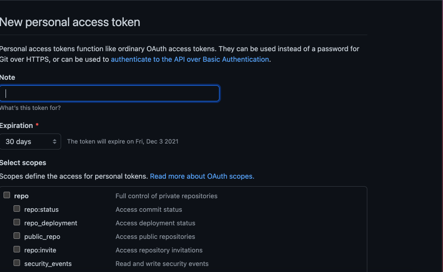 New personal access token을 얻어서 두번째 사진의 '암호' 부분에 넣어준다.