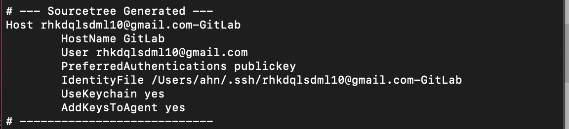 Source Tree의 Public Key -> GitLab에 등록 -> known_hosts GitLab 정보없음 -> GitLab에 등록된 다른 Public Key을 통한