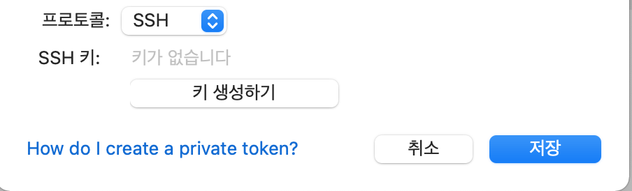 비밀번호를 입력하고 저장을 누르면 새로 생성된 Key가 GitLab에 등록되고 ~/.ssh"에 생성이 된다.