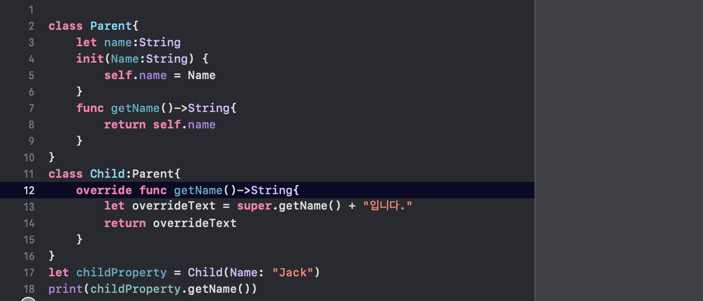 메서드 내의 로직들을 새롭게 정의하는 것을 말한다.