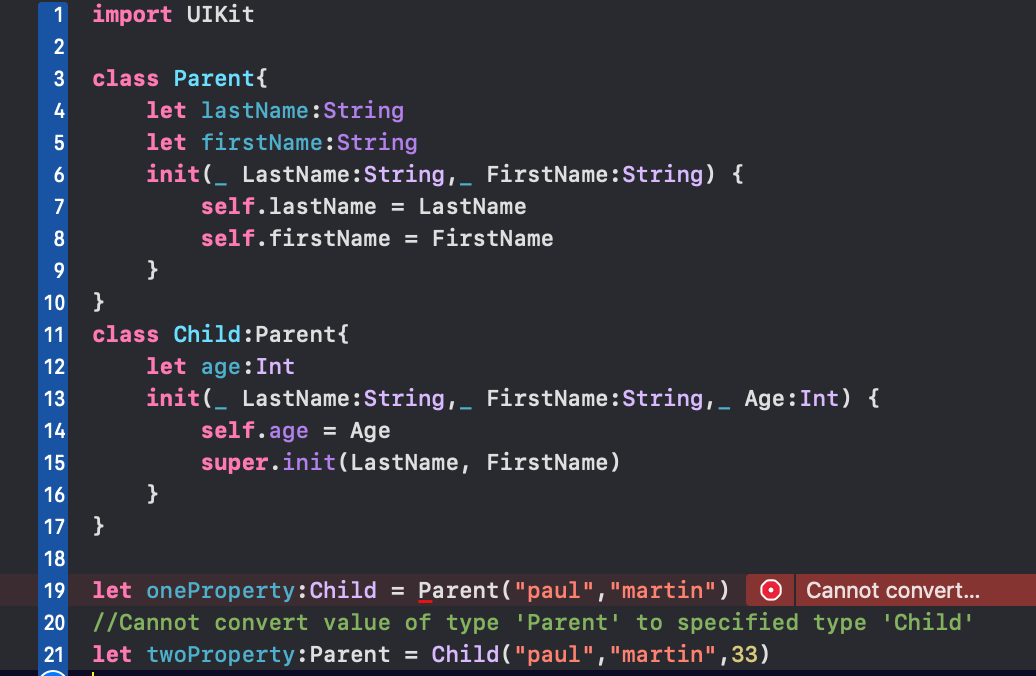 oneProperty는 Child의 타입을 갖고 있는 참조 변수여서 Parent 타입의 인스턴스를 참조할 수 없다.
