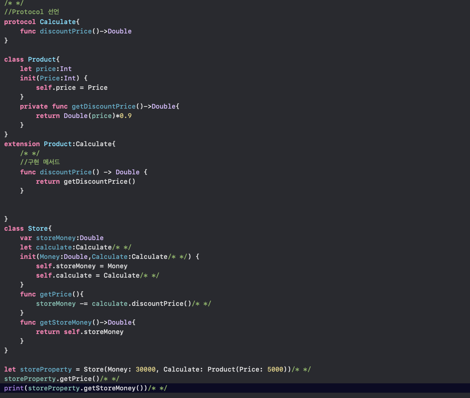 Product 클래스는 아무리 코드를 바꾸더라도 Calculate 프로토콜만 채택하면 Store 코드는 변경할 일이 없다.