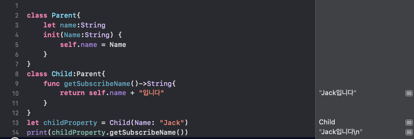 상속을 통해 부모 클래스로부터 name 필드를 물려받아 자식 클래스에서 getSubscribeName이라는 기능을 추가하였다.