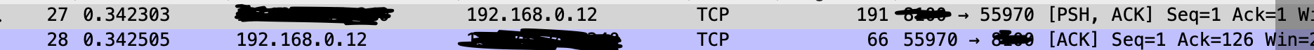 분명 ACK를 보내면 Send 주황색 막대가 보여야 하는데 안보인다;;